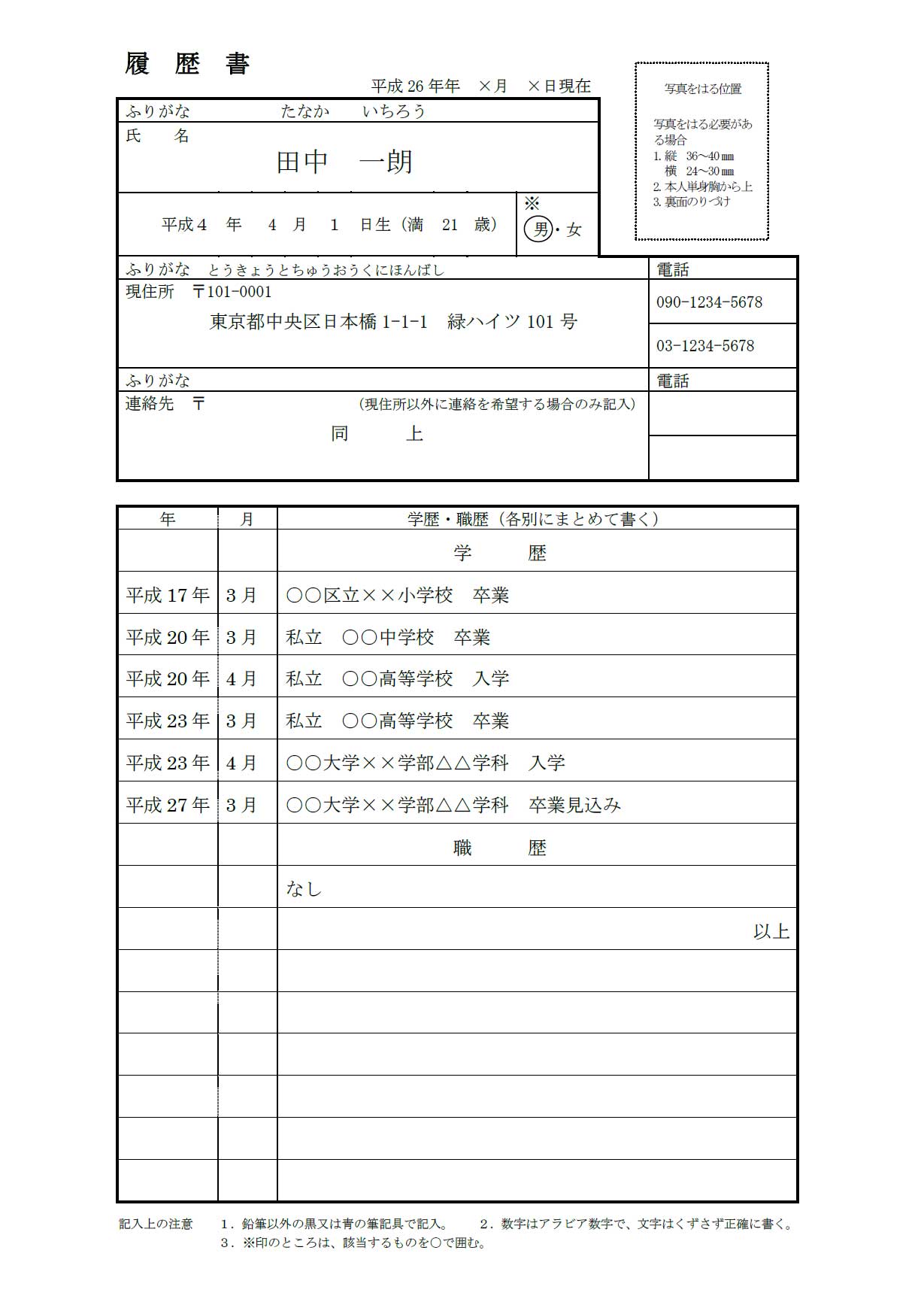 ⇒⇒⇒就活の履歴書、書き方一例
